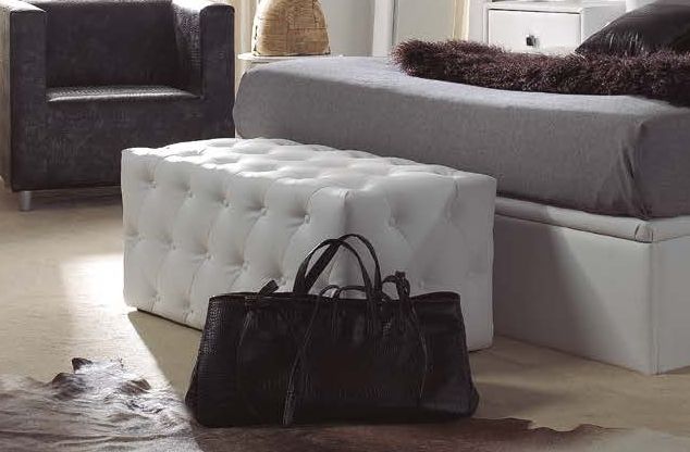 Banqueta para pie de cama rigido polipiel blanca Modelo Capitoné