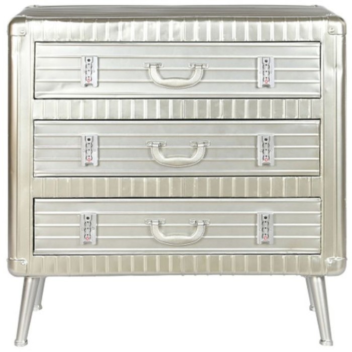Cajonera de metal y MDF tres cajones plateada Maleta