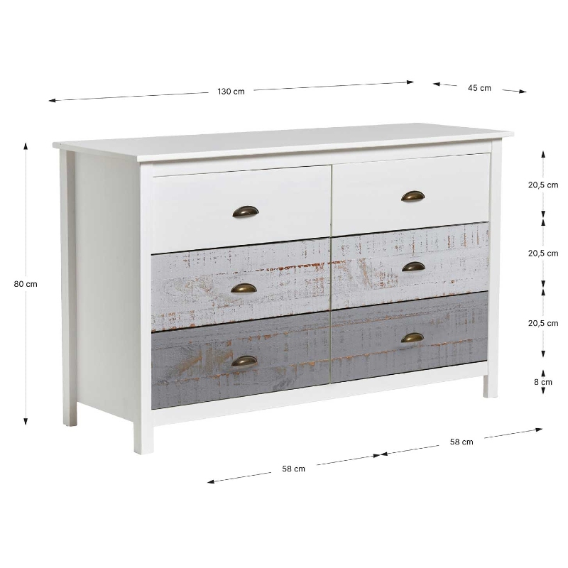 Cómoda para dormitorio formada por tres cajones grandes y dos pequeños Modelo Blue Times.