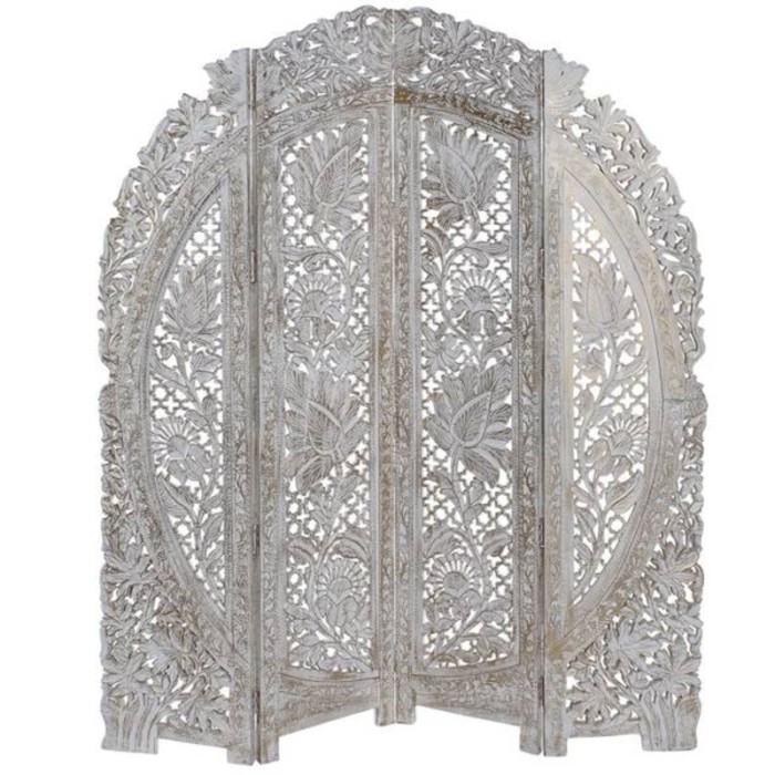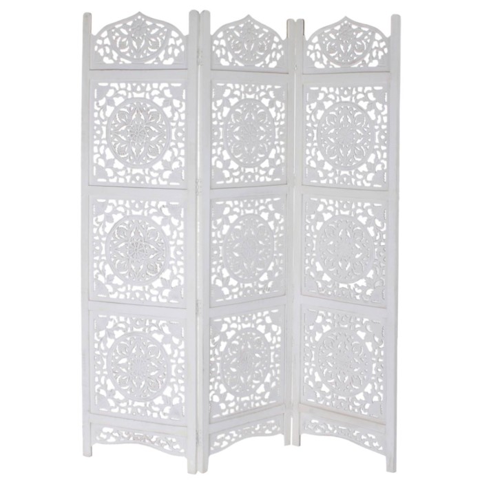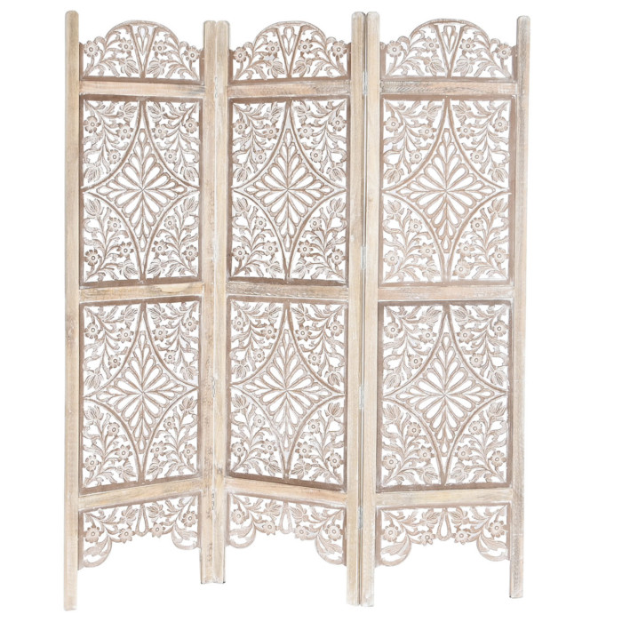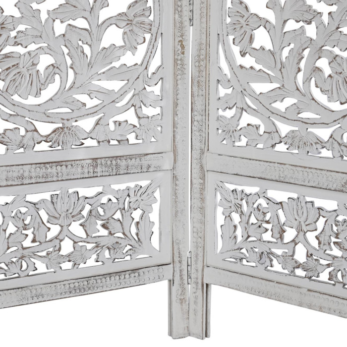 Biombo mango tallado decapé blanco Modelo Estrella