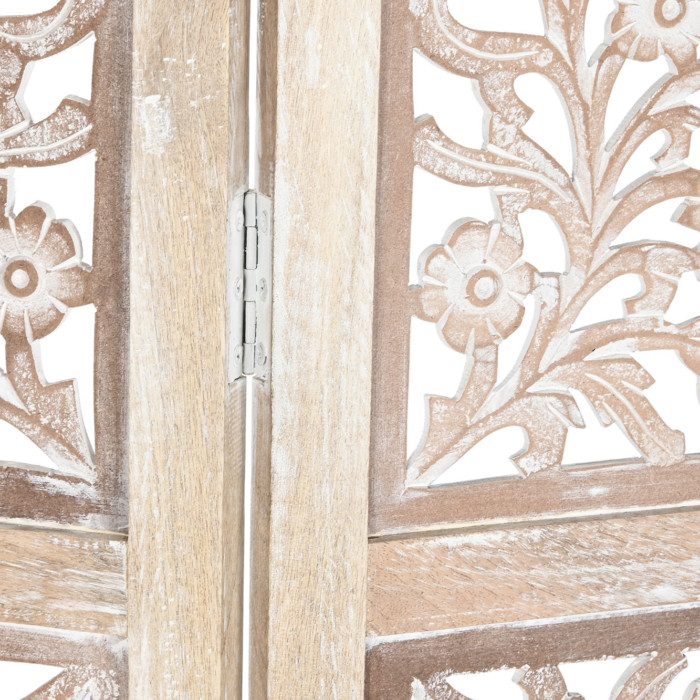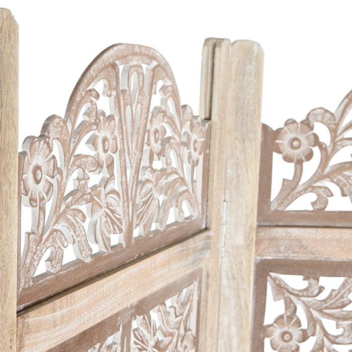 Biombo decapé natural madera tallada Yedra