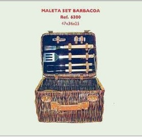 Cesta de picnic mimbre con set cubiertos barbacoa