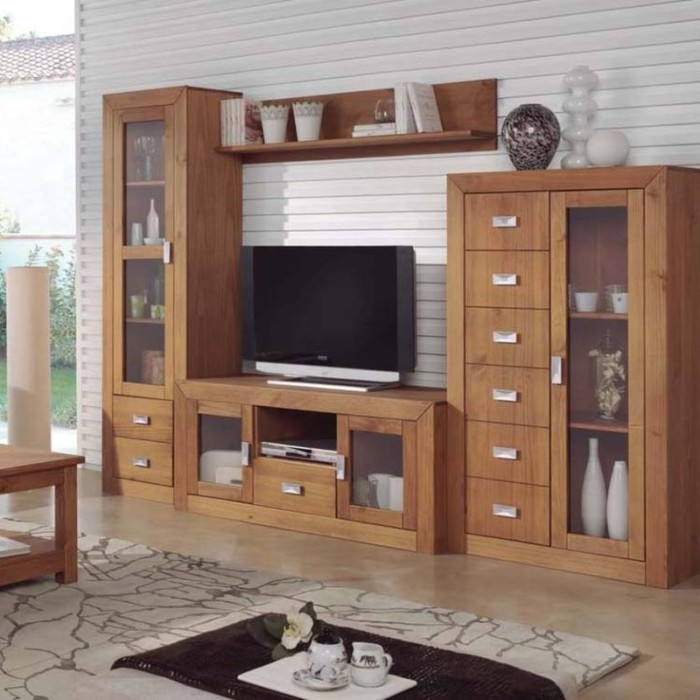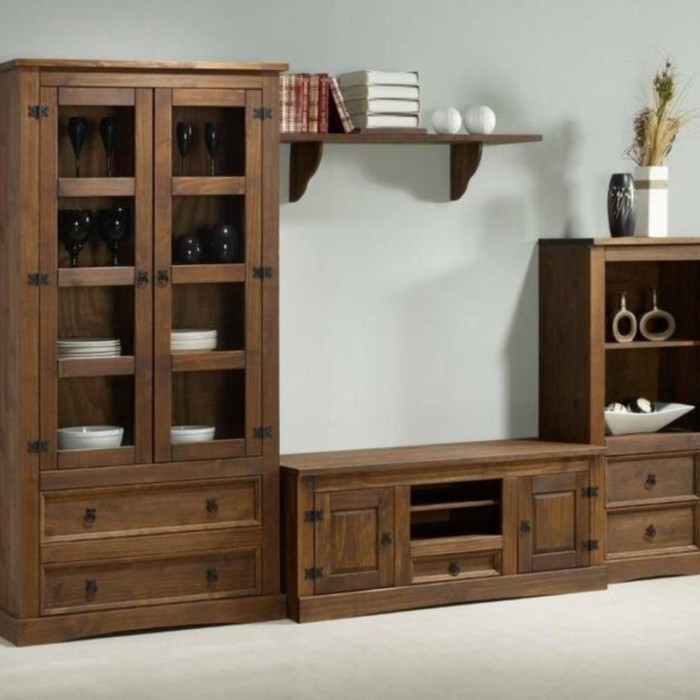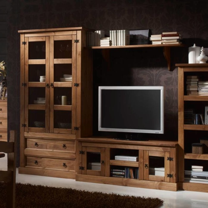 Composición mueble salón-comedor rústico nogal Veracruz III